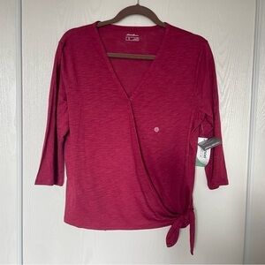 EDDIE Bauer Petite Large Gate Check 3/4 Sleeve Wrap-Front Top 3Q Top in Ruby
