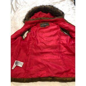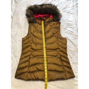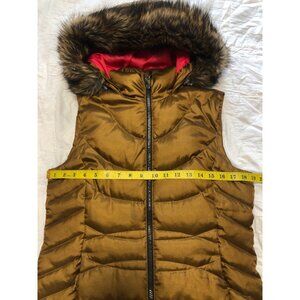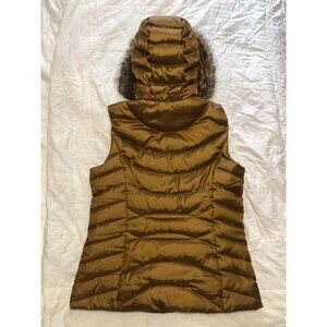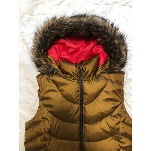 Eddie Bauer Puffer Vest with Faux Fur Trim Metallic Gold Bronze Size M