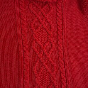 Eddie Bauer Red Knit Cotton Blend Cable Knit Fisherman Turtleneck Sweater Xl