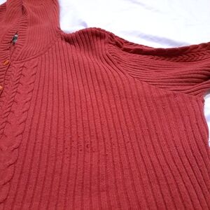 Eddie Bauer | Red cable knit button up hooded womens sweater. women's size large