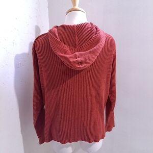 Eddie Bauer | Red cable knit button up hooded womens sweater. women's size large