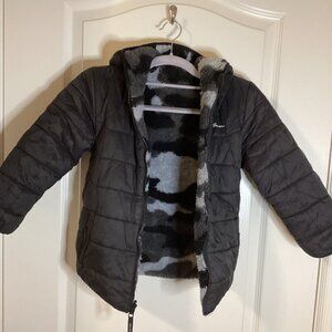 Eddie Bauer Reversable Fleece Lined Black Camouflage Puffer Jacket Size 6