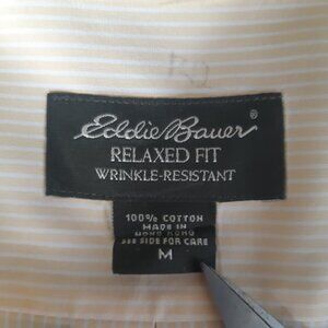 Eddie Bauer SZ M Relaxed Fit 100% Cotton Yellow Striped Men's Button Up Shirt