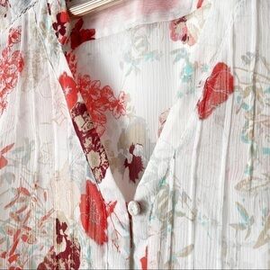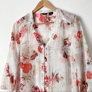 Eddie Bauer Sheer Floral V-Neck Pintuck 3/4 Sleeve Tunic Blouse