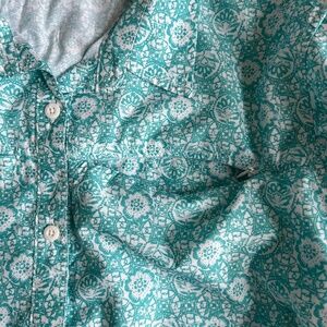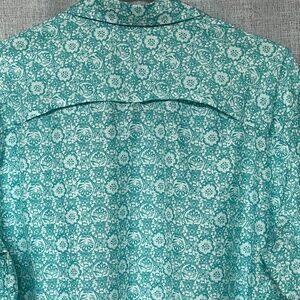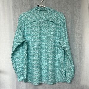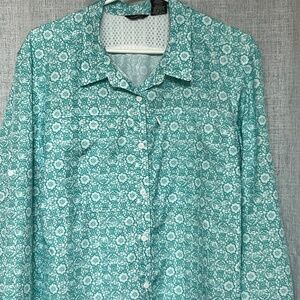 Eddie Bauer Shirt Button Up Size XXL Outdoor Back Vent TopTeal & White Floral