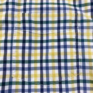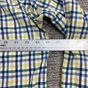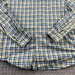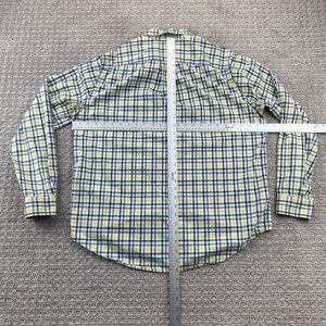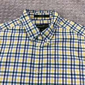 Eddie Bauer Shirt Men Large L Yellow White Blue Checkered Button Down Relaxed