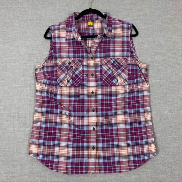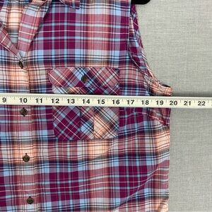 Eddie Bauer Sleeveless Button Down Plaid Shirt Purple Sz Large