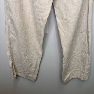 Eddie Bauer Tan 100% Linen Lightweight Flare Leg Pants Size 6 Split Hem