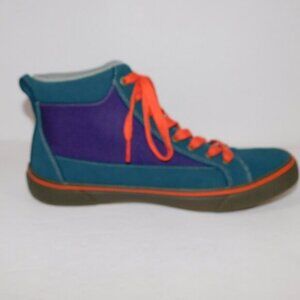 This hard to find Pair of Retired color Eddie Bauer Unisex STORM SNEAKER Water Resistant Shoe Book Mens 10.5 / Womens 12 in Blue Purple Orange are in fantastic condition worn a handful of times still bright and tons of use in them.