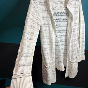 Eddie Bauer White Cardigan linen/cotton hooded size L