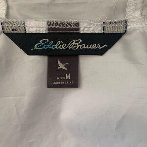 Stylish Eddie Bauer windbreaker jacket in white and gray. Perfect for casual outings.