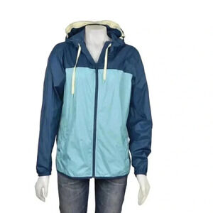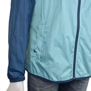 Eddie Bauer Windbreaker Jacket Turquoise Blue Lightweight Hooded Size Large