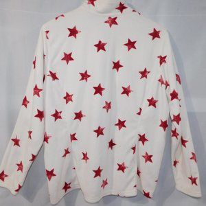 This adorable Eddie Bauer Womens 2XL white with Red Stars Light 1/4 zip Pullover Fleece Top is in Excellent clean condition. Top is super soft 100% Polyester - Machine washable.