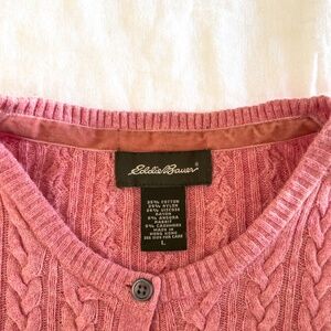 Eddie Bauer Women's Angora Cashmere Cotton Cable Knit Cardigan Preppy Old Money