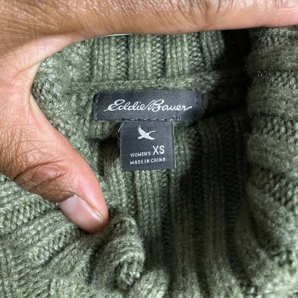 Eddie Bauer Women’s Green Lamb’s Wool Knit Turtleneck Sweater