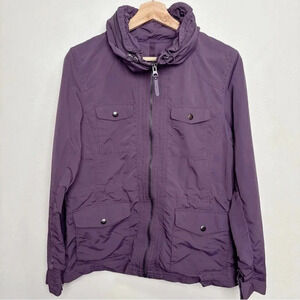 Eddie Bauer Womens Medium Hidden Hood Travex Windbreaker Purple Jacket