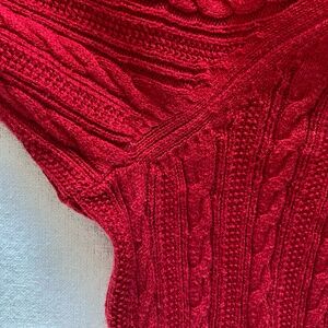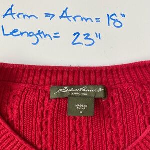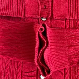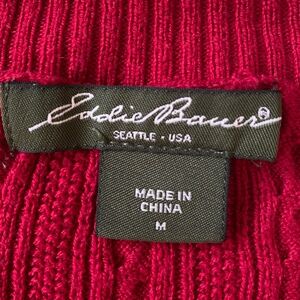 Eddie Bauer Womens Red Cable Knit Button Up Crew Neck Sweater. Sz-M