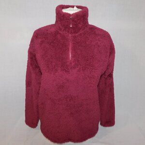 Eddie Bauer Womens S Berry Burgundy Quest Plush 2.0 1/4 Zip Teddy Fleece Sweater