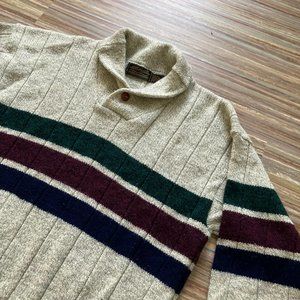 Eddie Bauer Wool Pullover Knit Sweater Shawl Collar Stripe Vintage Made in USA