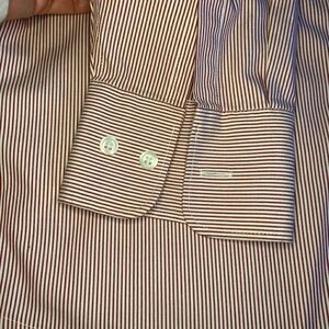 This shirt is in PERFECT condition. If you’ve never had one of Eddie Bauer’s wrinkle resistant shirts, treat yourself! I don’t even think sell these in Eddie Bauer anymore so this may be your last chance to get one! They are truly wrinkle free. They always look pressed and are so easy to care for. This one was worn very few times. Even the extra button is still attached.