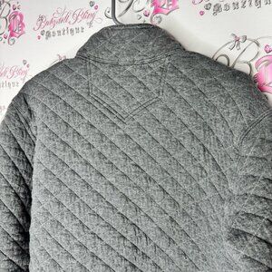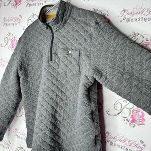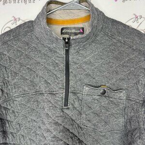 Eddie Bauer jacket pull over quilted sweater grey logos comfy thick warm quilt