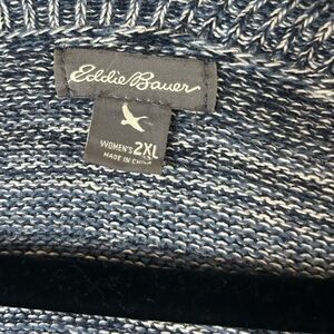 Eddie Bauer, size 2XL, 100% cotton blue cardigan, knit texture, draped front