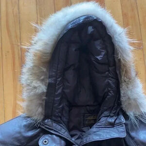 Eddie Bauer vintage Coyote fur trim leather down coat