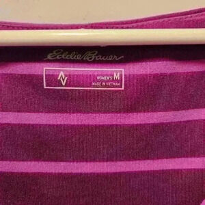 Look stylish and feel comfortable in this Eddie Bauer Women's Purple Striped Sleeveless V-Neck Surplice Travex Dress. Perfect for travel, casual outings, workwear, and business meetings. The dress is made of a blend of polyester and spandex, making it stretchy and durable. The A-line style flatters your figure, giving you a chic look. The dress has a V-neckline that adds a touch of elegance to the design. Its sleeveless style makes it perfect for hot summer days. The dress is short in length, making it perfect for showing off your legs.