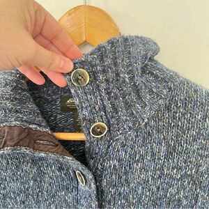 Eddie Bauer Blue Marled Elbow Patch Collared Wool Blend Cardigan Sweater