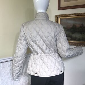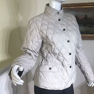 In excellent preowned condition gorgeous Edie Bauer light quilted jacket. Premium quality goose down filled, adjustable interior waist drawstring, flap pockets, snap front, unlined.