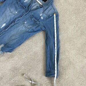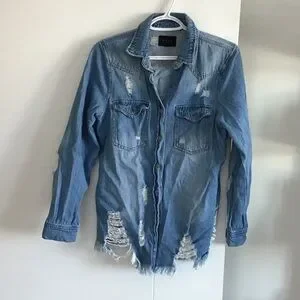 Elevate your casual style with the Eden blue ripped denim jacket. Perfect for adding a trendy edge to any outfit.