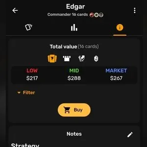 Partial Edgard Markov Commander Deck. The breakdown of the 16 most expensive cards is shown in USD. I can include basic lands as well, but the only non-basic s are those shown in the image.