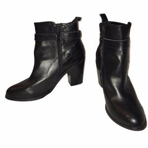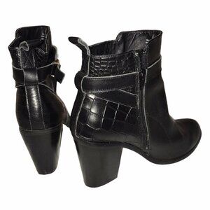 ShoeMint black ankle boots featuring a croc-embossed panel, buckle strap detail, and a sturdy block heel. A versatile statement piece perfect for edgy streetwear or elevated casual styling. How to Style: ✔ Streetwear Edge: Pair with skinny jeans & a leather jacket for a bold city look ✔ Minimalist Chic: Style with a sweater dress & tights for effortless sophistication ✔ Western-Inspired: Wear with straight-leg denim & a trench coat for a timeless vibe Pre Loved, gently used. Small scratch at the front. No othe rmajor flaws. Good condition. Size US10/EUR41 Style Inspo: ✔ Edgy Streetwear – Bold buckle details & croc texture for a sleek finish ✔ Model-Off-Duty – Chic and structured, perfect for effortless outfits ✔ Minimalist Fall Staple – Timeless black boots for any wardrobe Q1