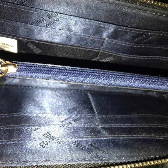 Edina Ronay London NWOT Black Leather Blue Interior Zip Around Wallet