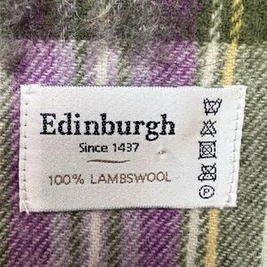 Edinburgh Scarf 100% Lambswool Rectangular Fringe Purple Cream Plaid Check Soft