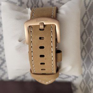Edison men's chronograph watch with rose gold colored case and light brown leather strap. NWOT. Time set and tested. Looks and works great.