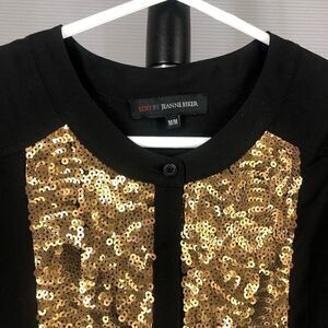 EDIT BY JEANNE BEKER Black Gold Sequin Pleated Black Keyhole Sleeveless Blouse Sz M