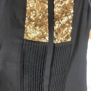 Edit BY JEANNE BEKER Black Gold Sequin Pleated Black Keyhole Sleeveless Blouse S