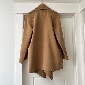 BEAUTIFUL and thick polyester wrap coat in caramel colour. Seriously such a beautiful piece. Is meant to be oversized but is a small-medium.