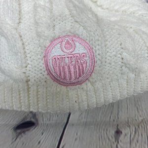 Edmonton Oilers Beanie Women Winter Hat Cap Toque White Cable Knit NHL Hockey