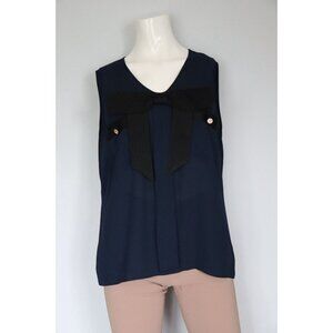 Edward Achour Paris Women's Size 46 US14 Blue Black Bow Blouse Sleeveless Shirt