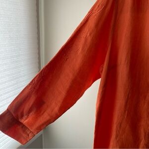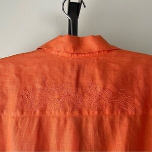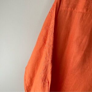 Edward Irish Linen Orange Embroidered 100% Linen Button Down Top Shirt Plus Size