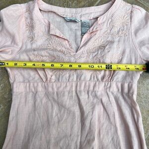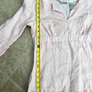 Edward Petite Womens Pastel Pink Linen Boho Embroidered Coquette Girl Blouse