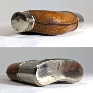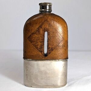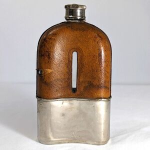 Gentleman’s English Silver-Plate & Leather Pocket Hip Flask. There are no engravings or markings left.