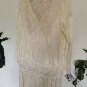 Edwardian Cream Satin Wedding Bridal Elopement Dress Gown Gunne Sax McClintock