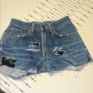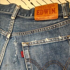 Edwin Blue Jean Shorts with Frayed Hem and Vintage Look. Size 29.