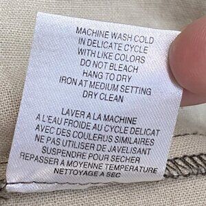 Great used condition. No holes or stains. No pilling.Two tiny pulls, see close ups. Minor signs of wear. Size 4, measurements in pics. Some stretch in the waist. Linen viscose blend.