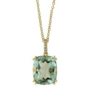 Stones: Rectangle Green Amethyst 6.5,Round Diamond 0.02, 18” Chain included