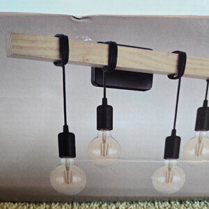 Eglo Kingswood 4-Light Wood and Black Finish Vanity Light Fixture New in Box