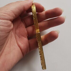 Measures approximately 4" in length, this Ankh Cross is an Ancient Egyptian symbol. This is the outline of the symbol, with open interior. It is a textured metal, in gold colour.